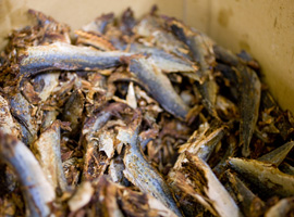 天然原料の風味をそのまま生かすため、製造の前日に自社で節の粉砕を行ないます。