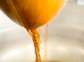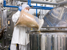 レシピ通りの順番で原材料を混ぜ合わせ温度、時間などの管理をしながら、味づくりをしています。