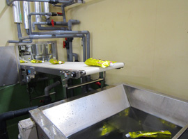 出来上がった味生庵は、一定の温度を保ったまま充填を行い、計量後、すぐさま冷却槽に移します。