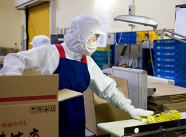 冷却を終えると、パックの水を拭き取って梱包していきます。