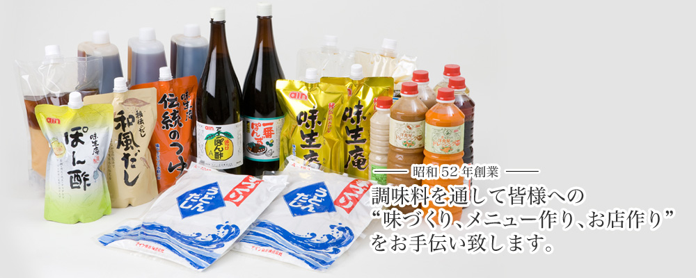 飲食店様の味作りを応援します!!! だし・タレ・調味料の製造・開発なら アイン食品にお任せ下さい。