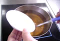 高温(200℃)のサラダ油で表面がカリッとなるまで手早く揚げる。