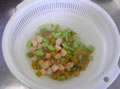 枝豆は下ゆでしてうす皮をむき、半分にばらす。