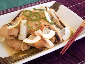 白ねぎは長さ3pに切り、焼き台で焼き目がつくまで焼く。 |